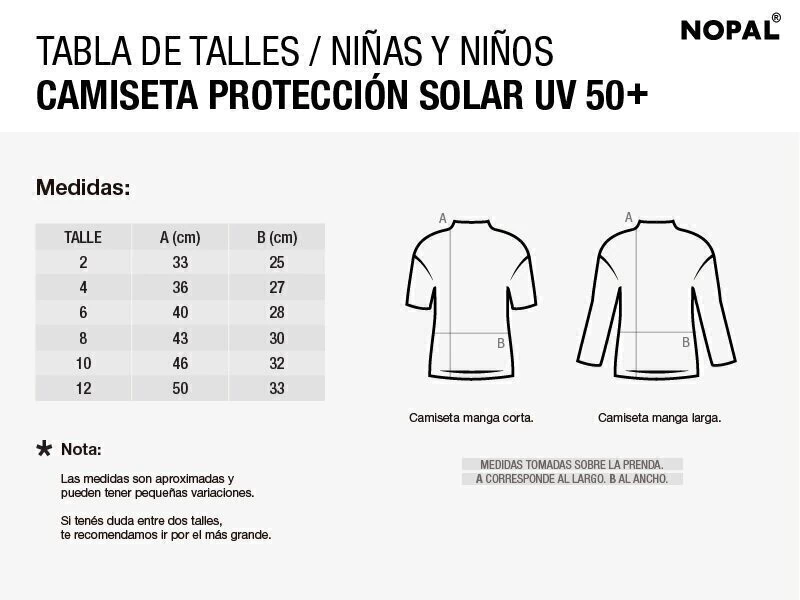 La camiseta de protección solar UV (factor 50) es la prenda ideal para proteger a los niños y niñas de los rayos ultravioletas del sol. Cada camiseta está certificada y homologada otorgando un filtro del 97,5% de los rayos ultravioletas del sol, siendo esta protección la más alta existente para prendas deportivas. Cada camiseta lleva una etiqueta que certifica dicha protección.